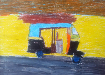 On a similar note the children of OM Shri academy from the ages of 3 and above have created these raw beautiful works of art that has taken me back to the rawness of what I have missed. The exhibit held in the teacher's house ( Mrs Yugashri) is much owed to her as the inspiration of this exhibition who has encouraged the students to let go and be free. The students have responded genuinely to her request and have given in vivid life to their works. There are so many works to count into this display/ exhibit that naming my favourite would be biased as they have all got their “blood” on the paper.